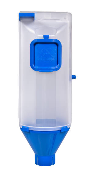 - Exclusive discharge clutch allows for individual dispensing of feed.