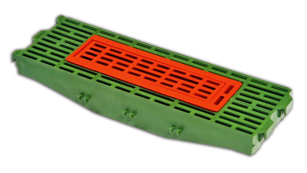 Trap door linked to a slat, which allows the excrement’s to be removed easily and thus maintain the hygiene required in the farrowing pen.